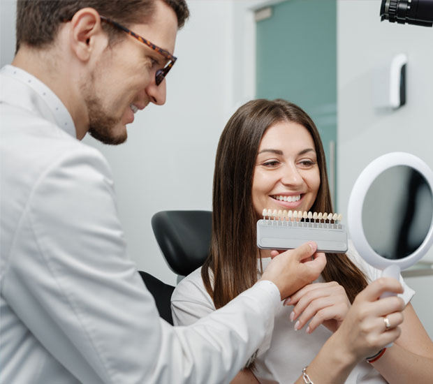 For composite resin veneers, we remove the tooth enamel first. The composite resin, which matches the natural enamel, covers and reshapes the teeth to improve the appearance. After, a special light seals the resin to the underlying teeth. Finally, we file the veneers to achieve a natural appearance.